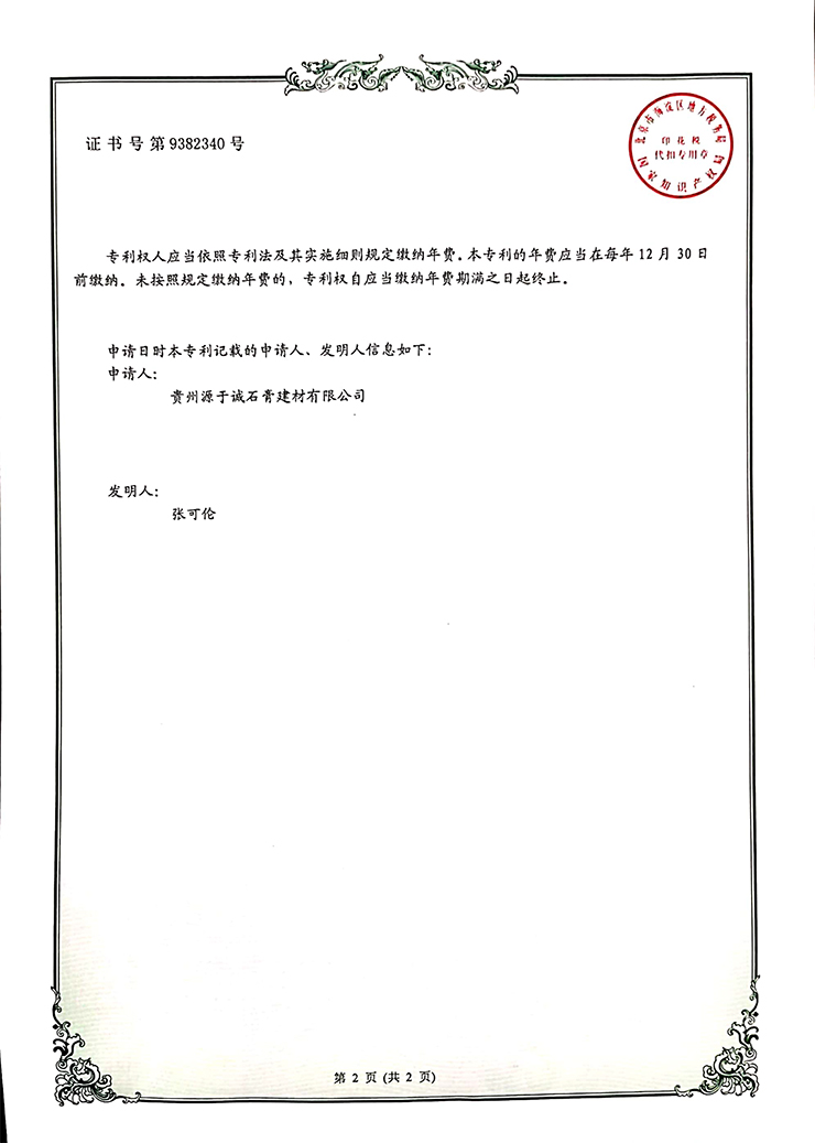 專(zhuān)利證書(shū)(一種蒸汽石膏生產(chǎn)用冷凝液及尾氣回收利用裝置)